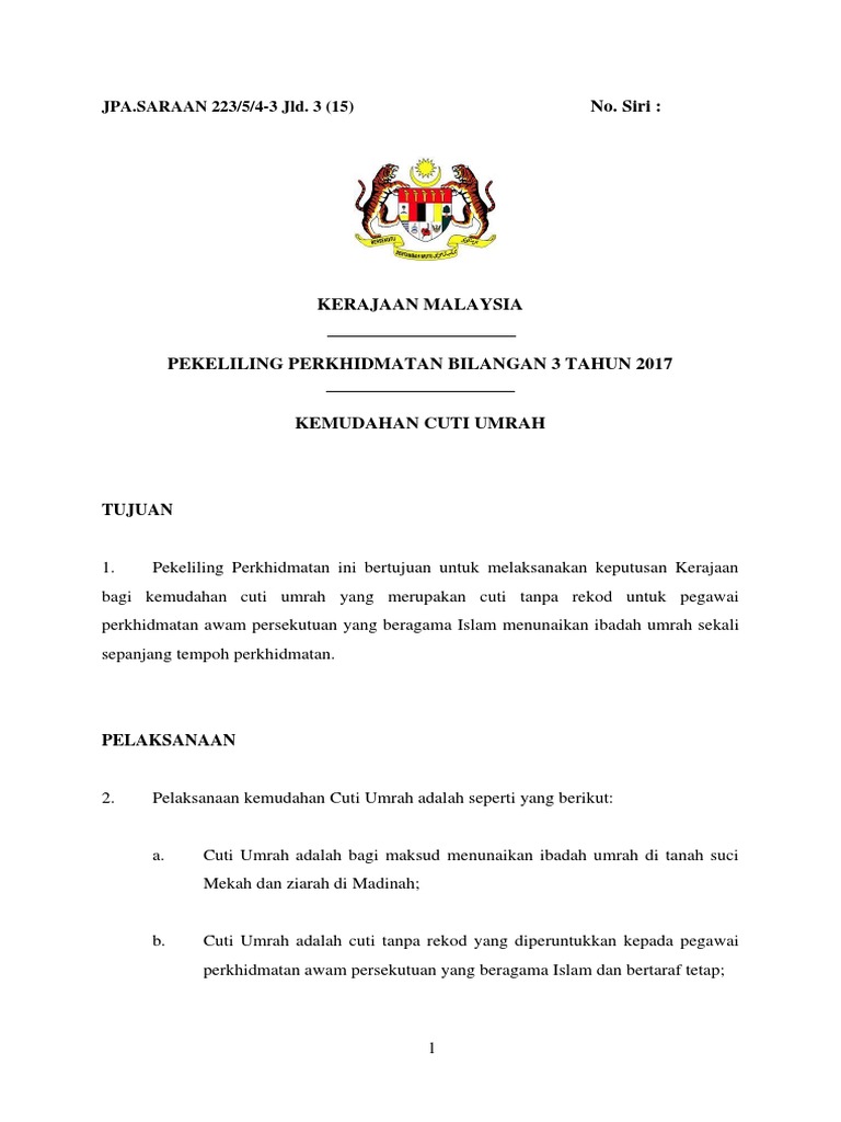 Pekeliling Cuti Menunaikan Haji - Akan tetapi ada seorang hamba allah yang bernama zaid seorang tukang kasut yang tinggal di kota damsyik yang mendapat pahala haji mabrur... Ibadah wajib yang diatur uu. Pembekuan ini tidak melibatkan mereka yang mendapat tawaran menunaikan fardu haji atau umrah dan keperluan ke luar negara tertentu masih boleh. Dalam perbentangan bajet 2018 pada bulan oktober tahun lalu, satu pekeliling berkenaan cuti rehat khas (crk) telah diluluskan berkuatkuasa pada tahun 2018. Ini kerana setiap individu yang berdaftar dengan tabung haji perlu menunggu giliran mereka yang mana mengambil masa hingga puluhan tahun lamanya. Jika cuti melebihi 40 hari nyatakan