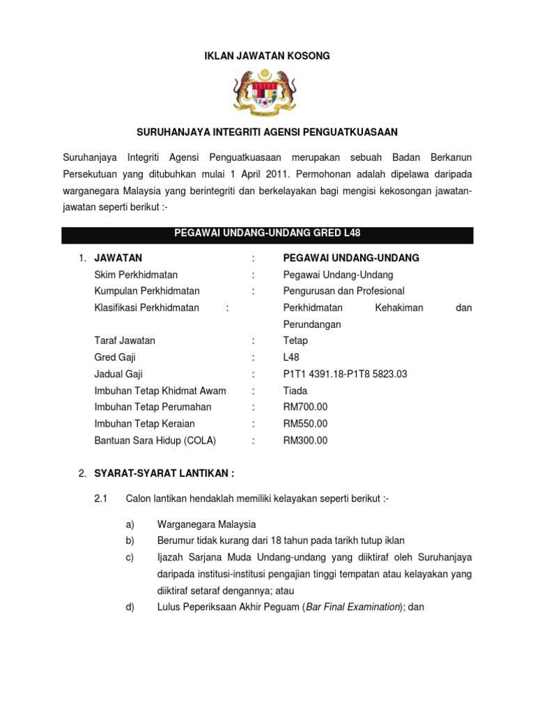 Savesave jawatan kosong pegawai eksekutif (perundangan) di.