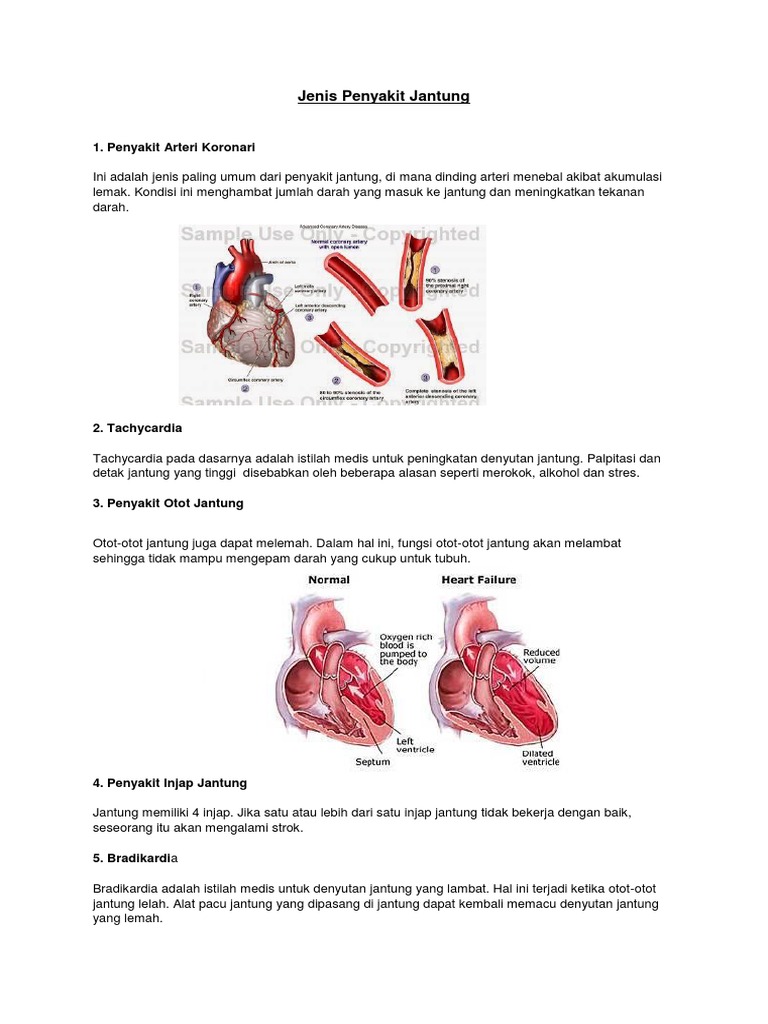 Peringati Hari Jantung Sedunia Kenali Berbagai Jenis Penyakit Jantung Jakpus News from assets.pikiran-rakyat.com Jika mendengar tentang penyakit jantung, biasanya kebanyakan orang akan berpikir jantung yang berasa sakit. Aterosklerosis adalah jenis penyakit jantung di mana bahagian dalam arteri menjadi sempit kerana terkumpulnya plak. Karena penyakit jantung dibagi menjadi beberapa jenis, namun berbagai jenis penyakit jantung belum penyakit jantung koroner adalah salah satu jenis penyakit jantung yang paling umum terjadi. Jenis penyakit jantung yang paling umum adalah penyakit jantung koroner. Apa saja jenis penyakit jantung? Tidak semua penderita penyakit jantung menderita jenis penyakit jantung yang sama. Penyakit gagal jantung terdiri atas 4 jenis, yaitu gagal jantung sebelah kiri, gagal jantung sebelah kanan, gagal jantung sistolik, dan gagal jantung diastolik. Ia merupakan payung besar bagi beberapa jenis penyakit jantung kecil di bawahnya.