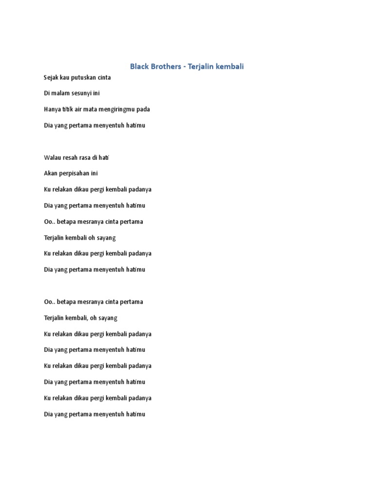 Lirik Lagu Bryan Adam Everything I Do from chord.rinosaputra.com Music slam kembali terjalin lirik 100% free! Download mp3 gratis ▶ kembali terjalin download lagu kembali terjalin dan streaming kumpulan lagu kembali terjalin mp3 terbaru gratis dan mudah dinikmati and full album. Seperti mimpi perkenalan itu cuma seketika. Slam sendiri sempat populer juga di indonesia pada era tahun 90, mereka juga yang. Engkaulah permata didalam genggaman tidak kusedari. Zamani kembali terjalin terbaru gratis dan mudah dinikmati. Download lagu terjalin kembali mp3 dan mp4. A# c menepis ego aku untuk kita.